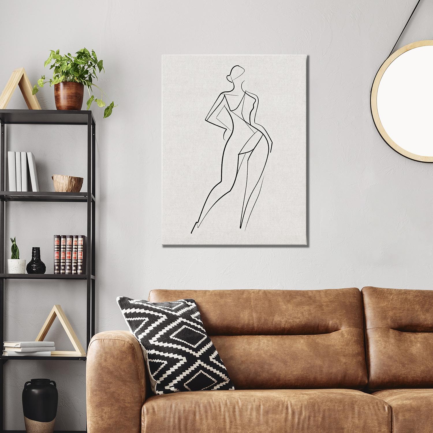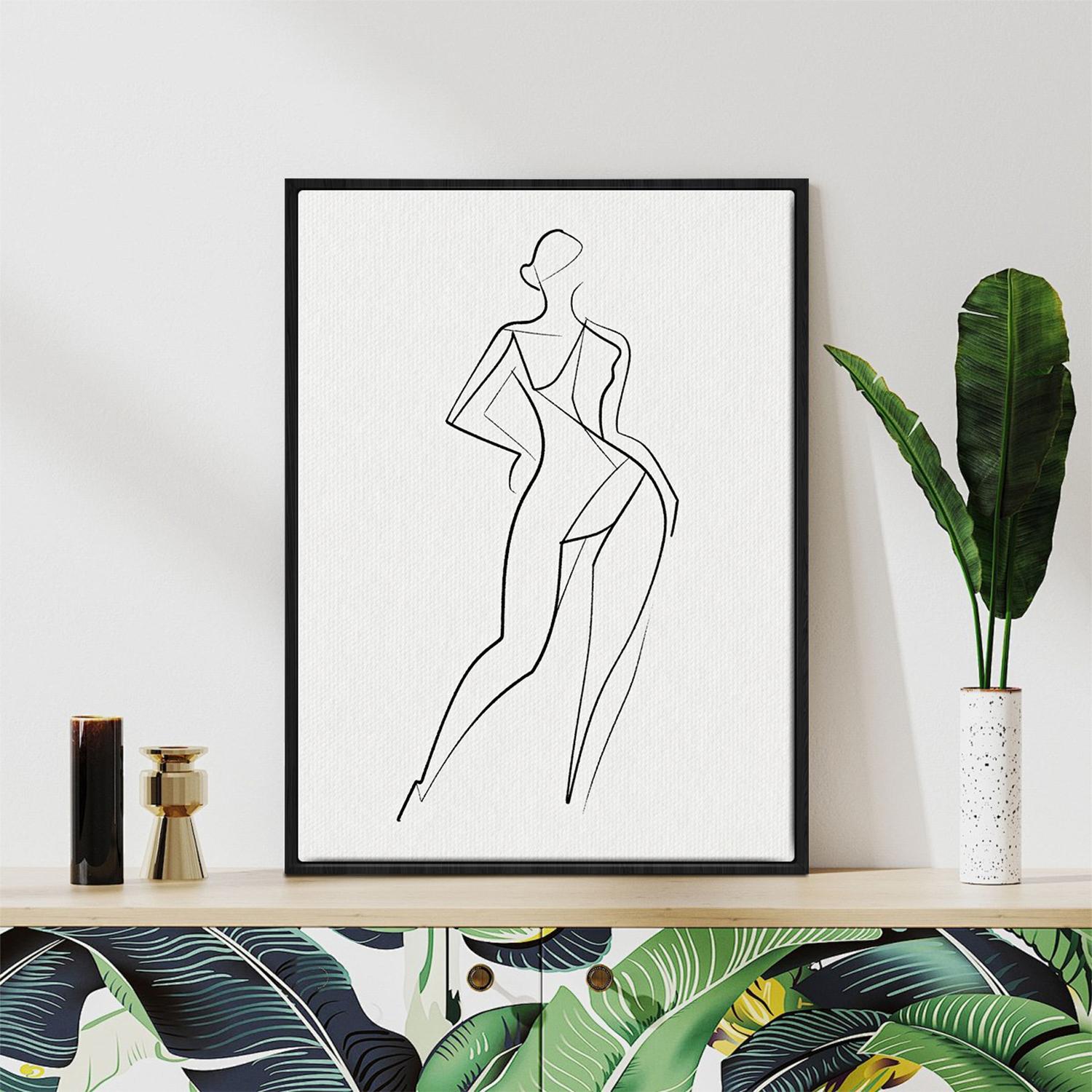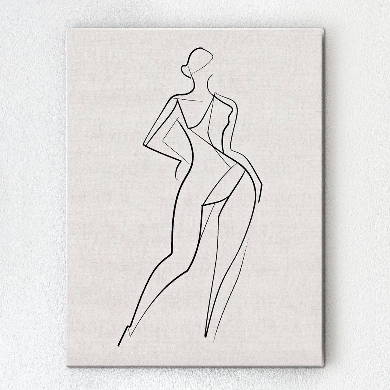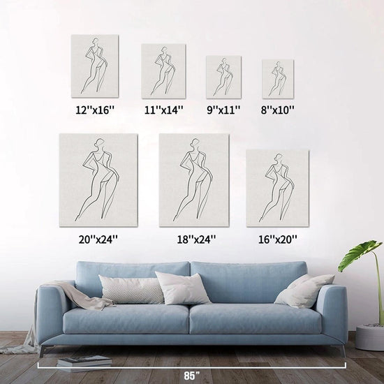 This wall art painting depicts abstract figures drawn with continuous lines, showcasing minimalism and flowing, rhythmic lines. This simple yet artistic painting will elevate the style of your space.