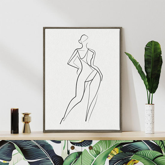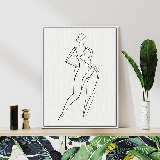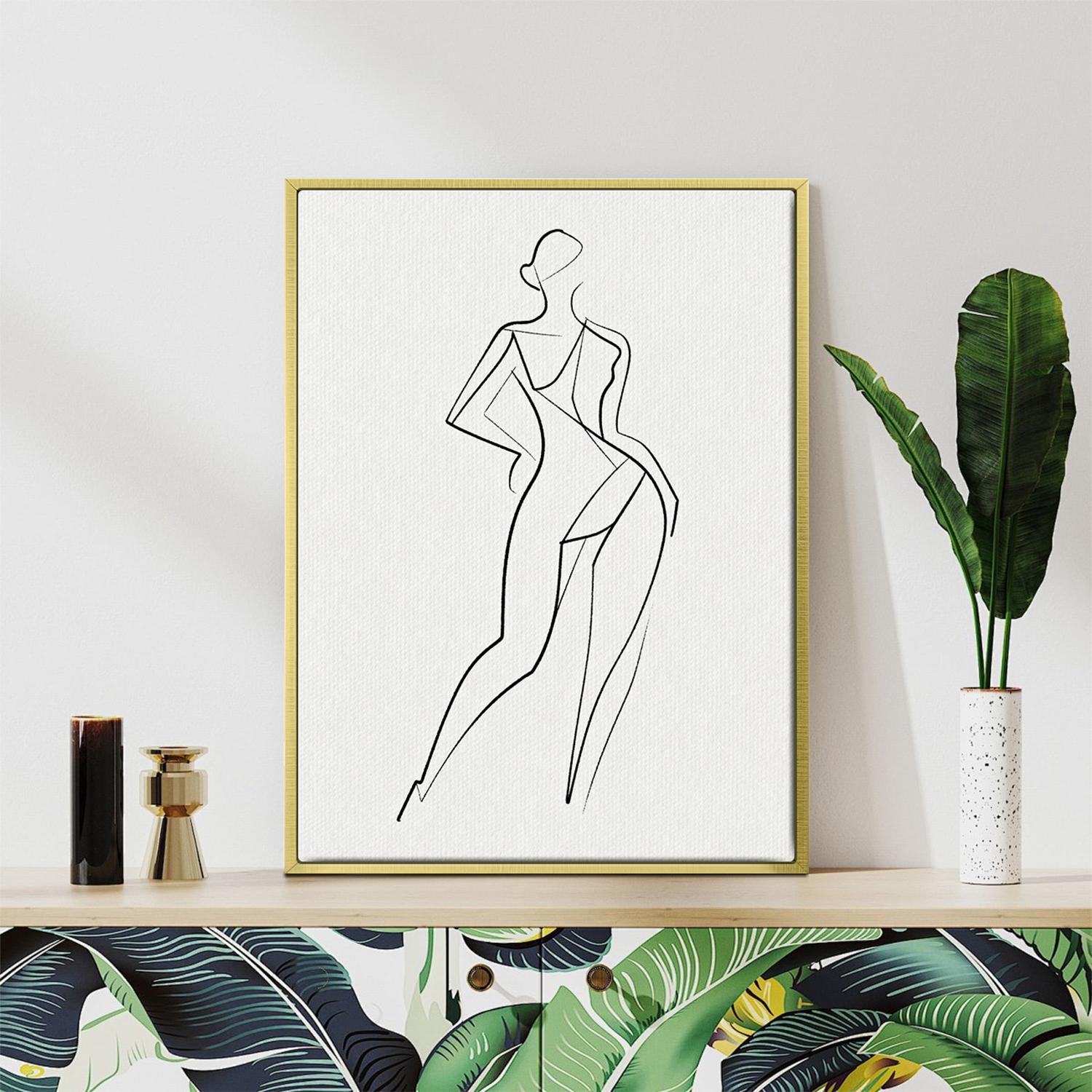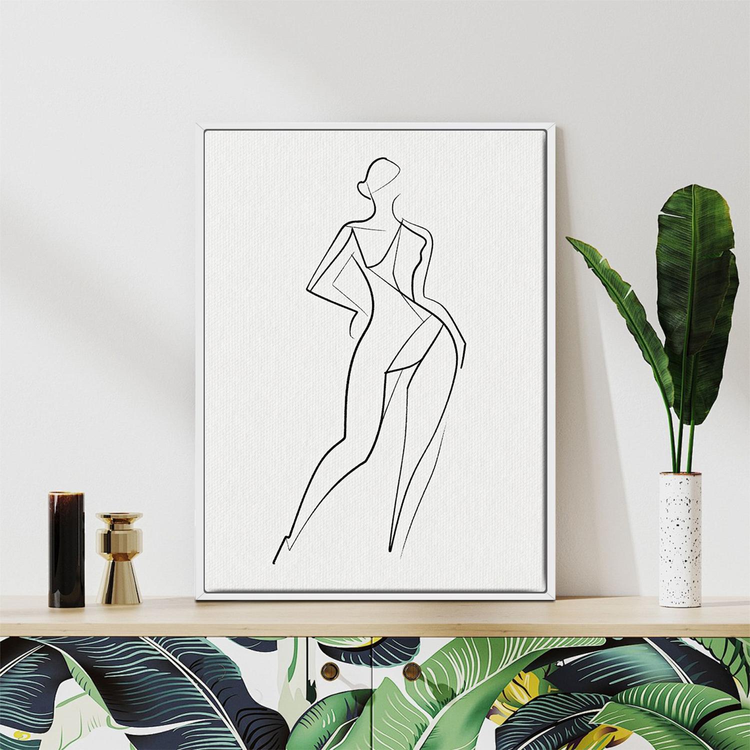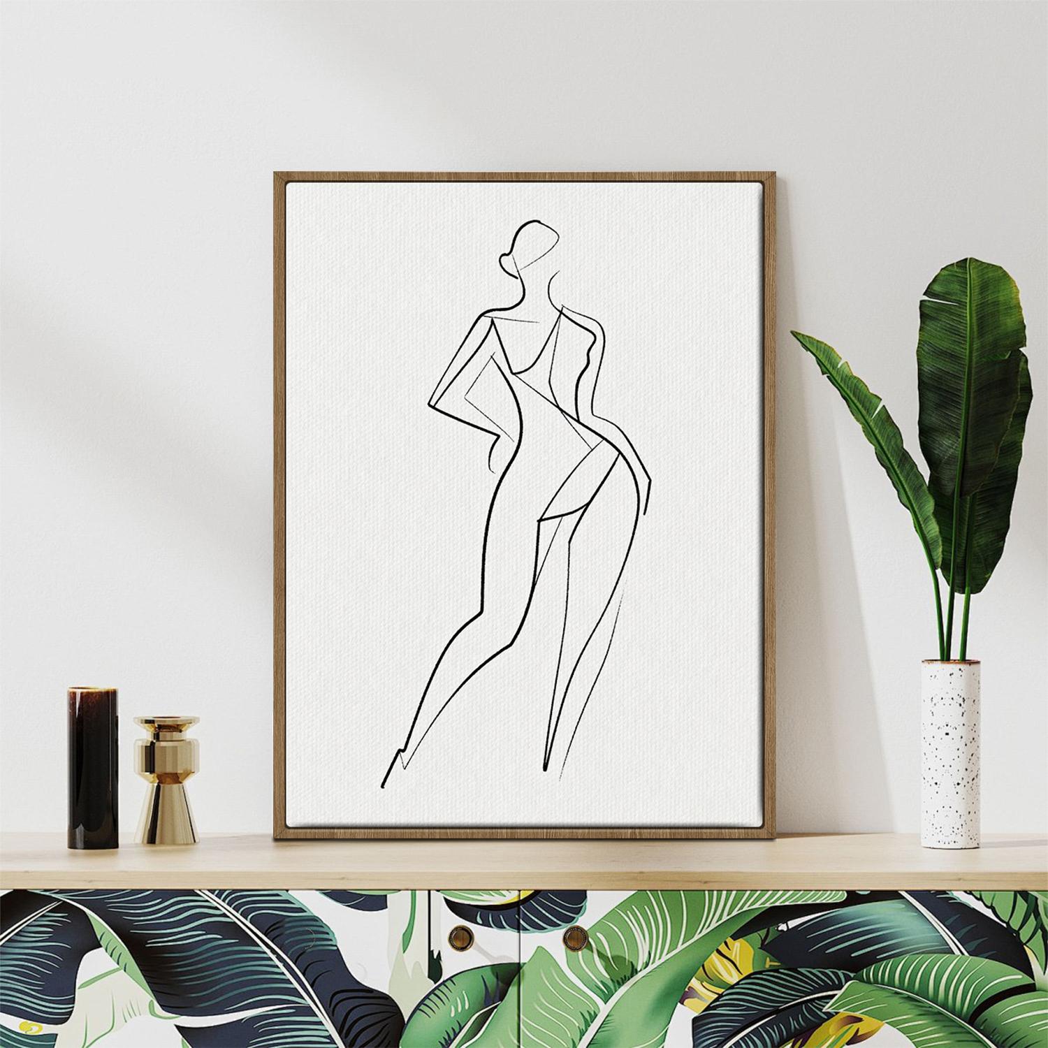 This wall art painting depicts abstract figures drawn with continuous lines, showcasing minimalism and flowing, rhythmic lines. This simple yet artistic painting will elevate the style of your space.